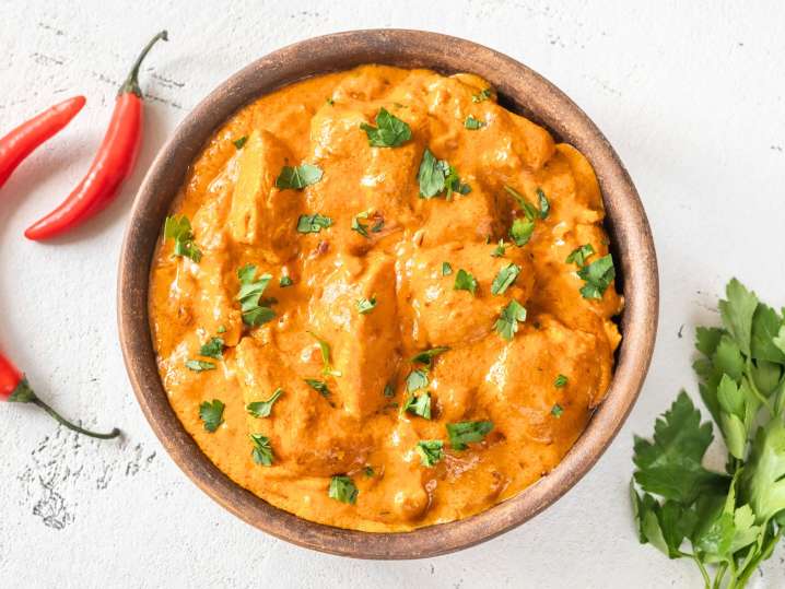 With chicken, yogurt, spices, tomatoes and cream