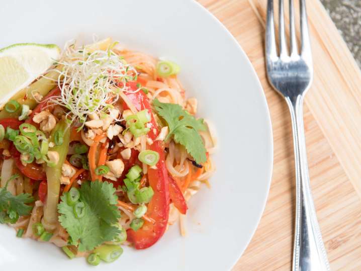 Chef Meir teaches traditional Thai dishes adapted for a plant-based diet. You'll start with Thai lettuce wraps with grilled tofu, flavored with peanuts and a sweet and savory coconut sauce. Next, create a Panang curry with onions, bell peppers and coconut milk. Master a classic pad thai with assorted vegetables, bean sprouts, crunchy peanuts and an optional egg. Last, finish the meal with the vibrant tropical flavors of a delicious mango sticky rice dessert.