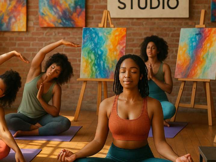 Time: 3:00 PM & 5:00 PM A unique fusion of art and mindfulness. This class includes a gentle yoga session followed by a guided painting activity that reflects your personal flow and intention. Price: $55 per class