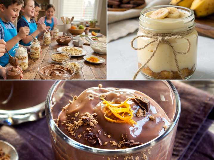 The kids will prepare two classic sweet treats from start to finish: a smooth chocolate mousse gently flavored with orange zest and a mason-jar banana pudding layered with creamy pudding, crunchy cookies and bananas. With guidance from Chef Chris, the kids will melt chocolate, whip cream, slice bananas and assemble their desserts step by step. The experience also includes time to decorate their jars before enjoying their homemade creations. Designed to build basic kitchen skills and a love for desserts made from scratch, this class is perfect for young beginners.