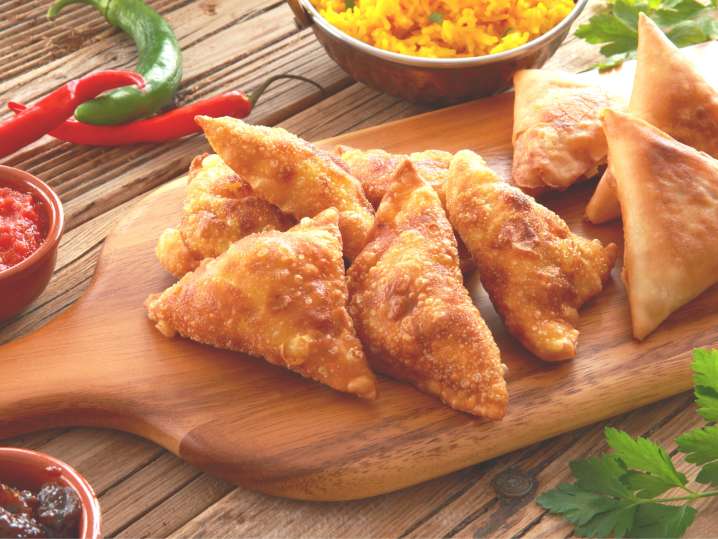 In this interactive cooking class, explore fried foods from around the world. Chef Sara will teach you to make flaky pastry for pyramid-shaped samosas with spiced potato and pea filling along with a tangy yogurt dipping sauce. Banana fritters are a popular dessert from the Caribbean islands to countries across Asia and make a sweet contrast to the savory samosas.