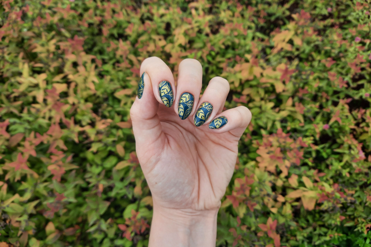 Create a navy or black base coat and add celestial details in polish or use appliques shaped like stars, planets or the moon. Or, create a cool Milky Way effect using a swirl of glitter for trendy Thanksgiving nails. You can also create astrologically-inspired nail designs for a fun birthday nail idea if you share a birthday with the month of giving thanks.