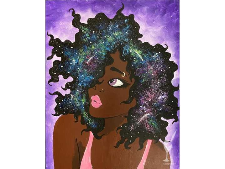 Bring your besties to this paint and sip session, where a talented instructor will teach you to paint a portrait of a girl with cosmic curls.
