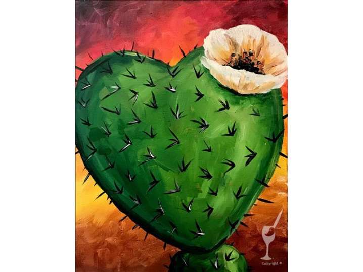 If you love desert flora, then this heart-shaped prickly pear cactus in full bloom is a paint and sip experience you won't want to miss.