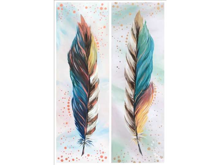 Invite your best friend to this fun paint and sip class to paint matching wispy feather paintings.
