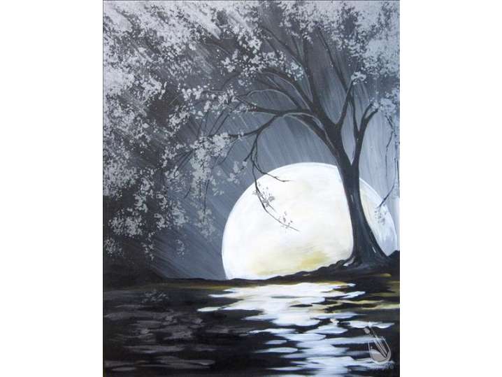 Stunning tone-on-tone colors render this paint and sip canvas a silver-coated work of natural art.