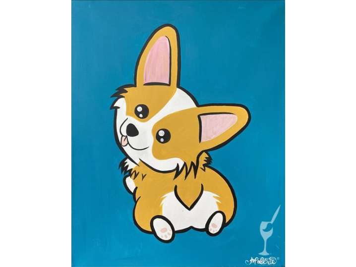 Bring your young artists to the easel for a family paint and sip session featuring this fanciful corgi pup!