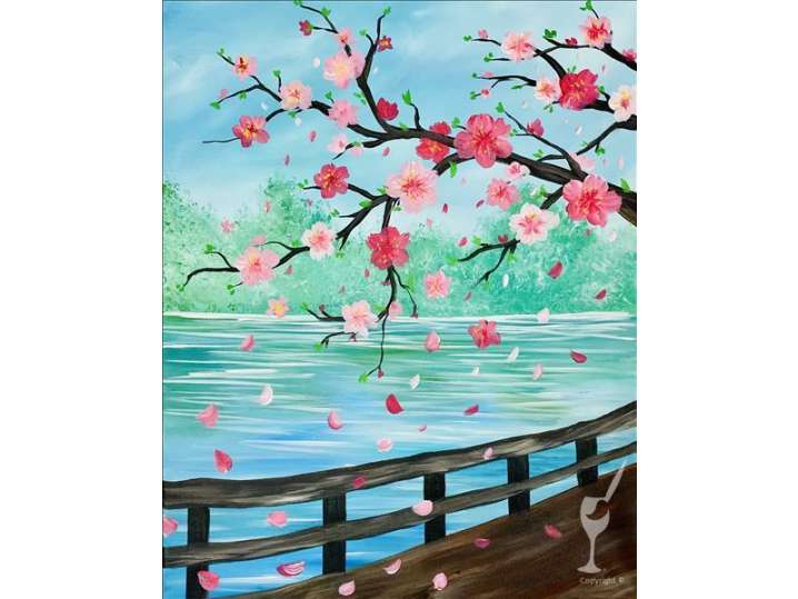 Imagine yourself strolling on the boardwalk below cherry blossoms in a paint and sip class that's perfect for spring dreaming.