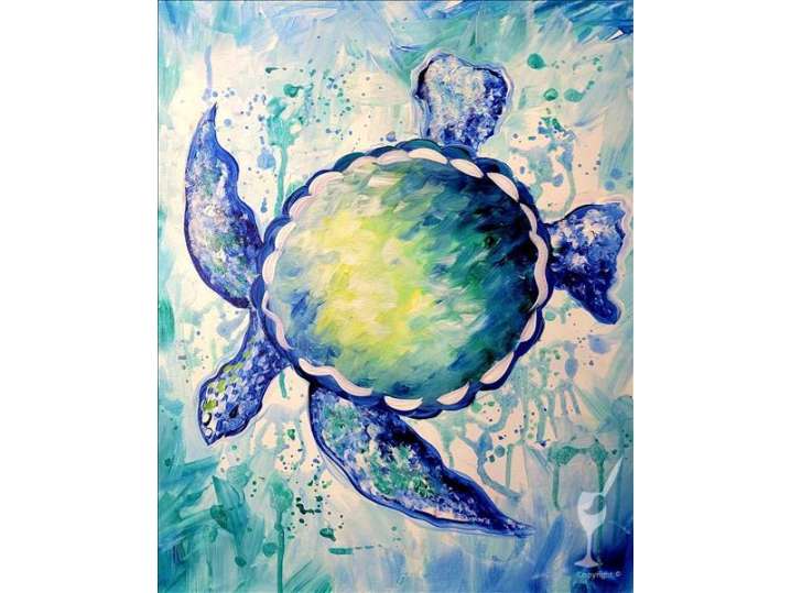 A calm turtle roams the sea in bright and earthy colors for this paint and sip session.