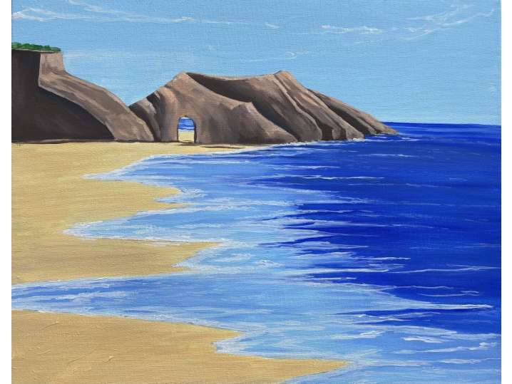 Paint a landscape of the laguna arches with rugged rocks meeting the lapping blue waters on the beach in this engaging paint and sip class.