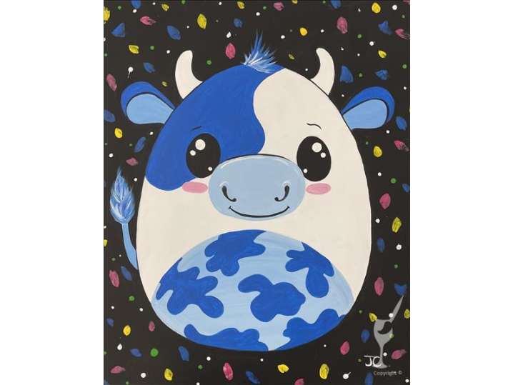 Capture the endearing charm of a friendly cow in a creative family-friendly paint and sip class.