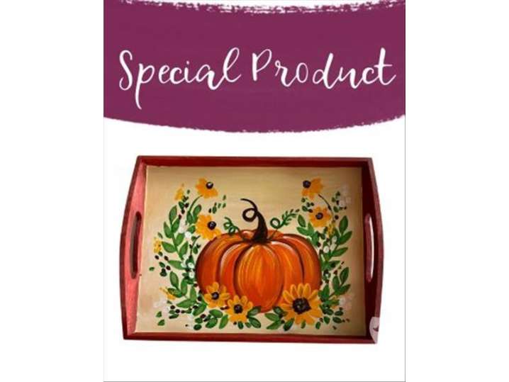 In this cozy paint and sip class, you'll design and paint a decorative tray inspired by the warm tones and cozy vibes of fall, featuring autumn leaves, pumpkins, and rustic accents perfect for the season.