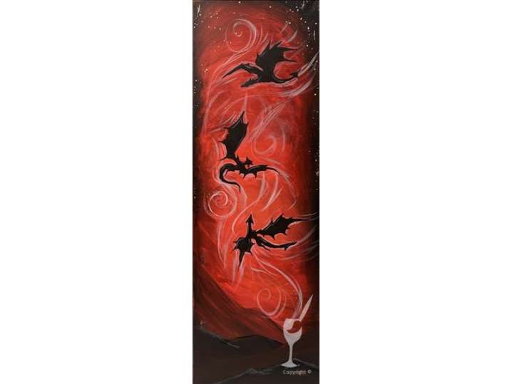 During this paint and sip class, you'll create a mystical masterpiece featuring dragons and a powerful atmosphere.