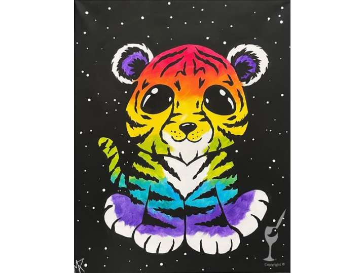 Paint and Sip: Rainbow Blacklight Tiger Fun