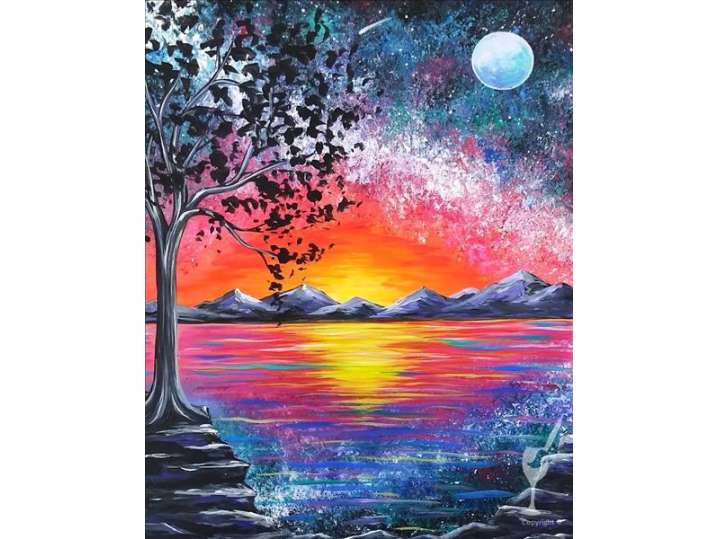 Paint and Sip: Peaceful Moonlight Glowing Above Lake