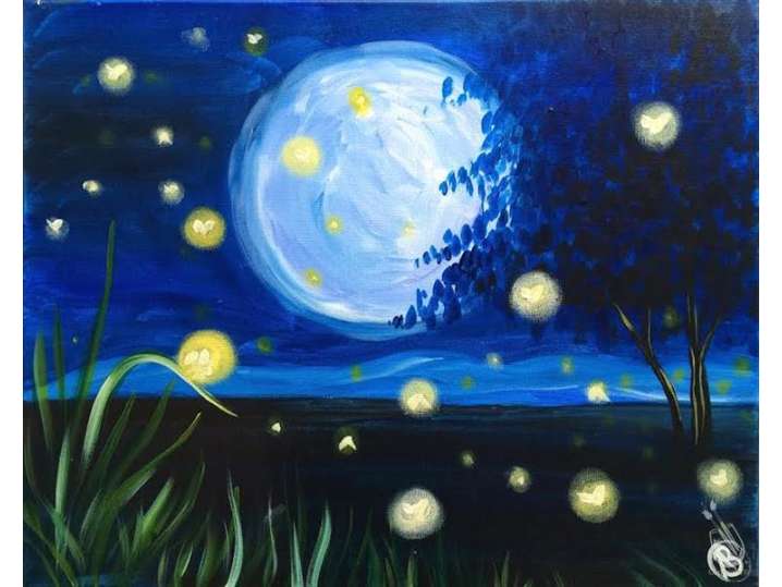 Paint and Sip: Fireflies Beneath Moon Glow