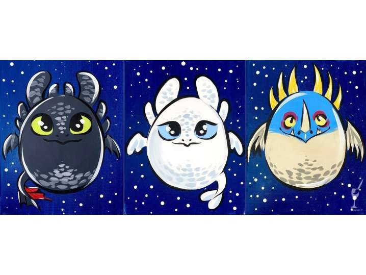 Choose your favorite squishy-style dragon from How to Train Your Dragon and bring it to life in this adorable paint and sip class.