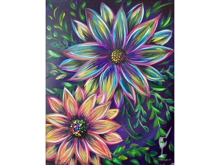 Brighten your canvas with vivid, glowing blooms in this electrifying neon flower-themed paint and sip class.