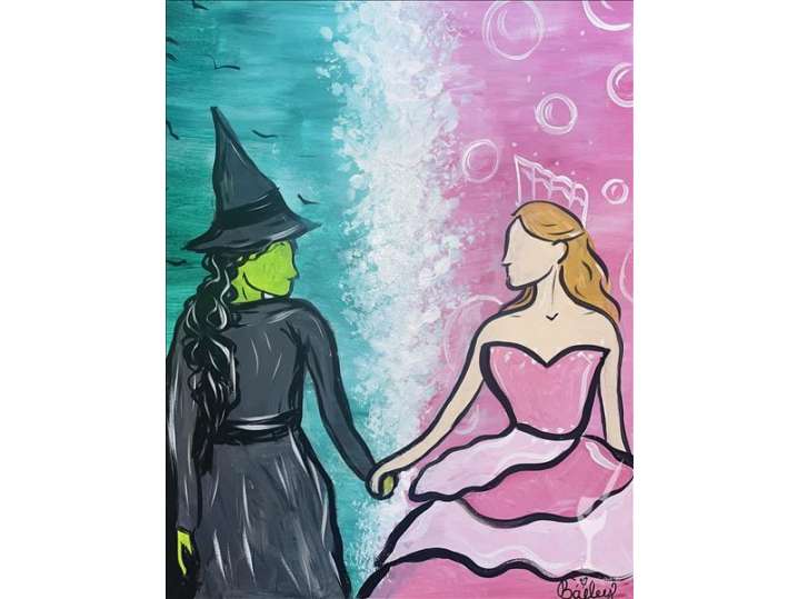During this paint and sip class, bring Glinda and Elphaba to life, each with their own color block and key traits.
