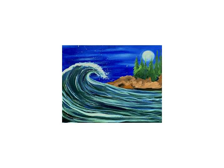 During this paint and sip class, create a majestic ocean wave under a full moon and a sparkling sky.