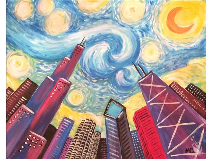 Capture Chicago’s skyline beneath a swirling Van Gogh–inspired night sky in this urban paint and sip class.