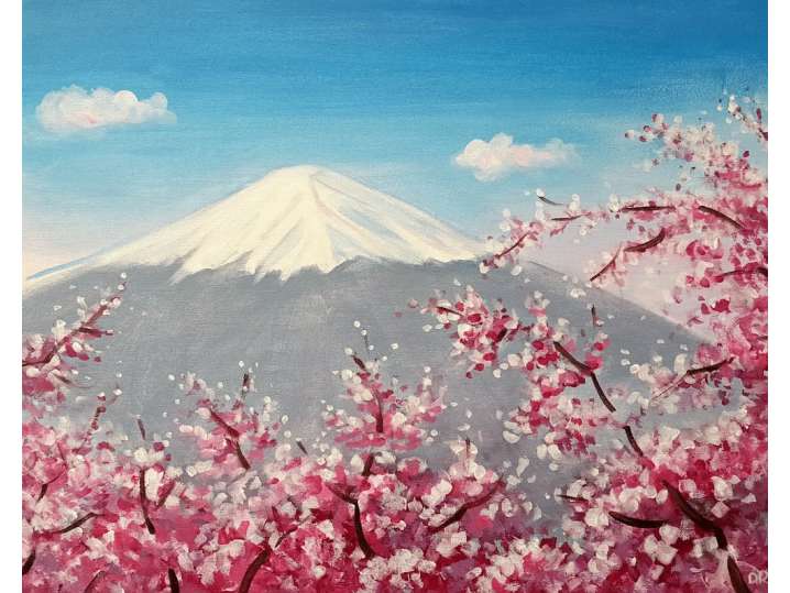 Paint and Sip: Mount Fuji and Pink Blossoms
