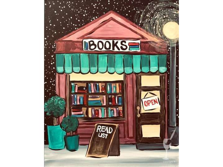 Paint and Sip: Cozy Bookstore Scene - Baytown