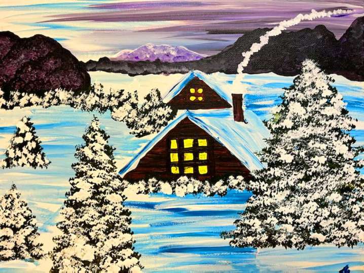 Paint and Sip: Snowbound Cabin Scene