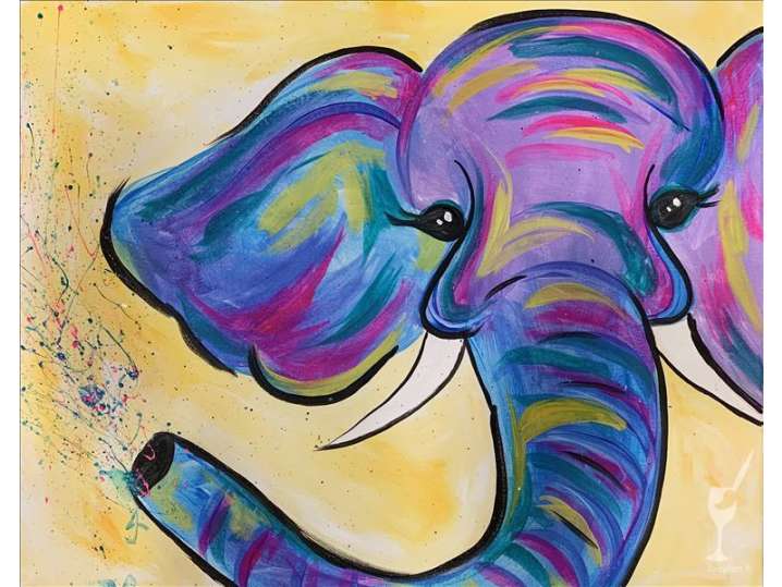 Bring the whole family to this kid-friendly paint and sip class, where you'll be led in painting a playful baby elephant splashing water with his trunk!
