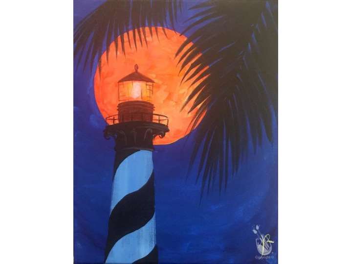A glowing beacon of light for ships on a warm summer night is the subject of this instructor-led paint and sip session.